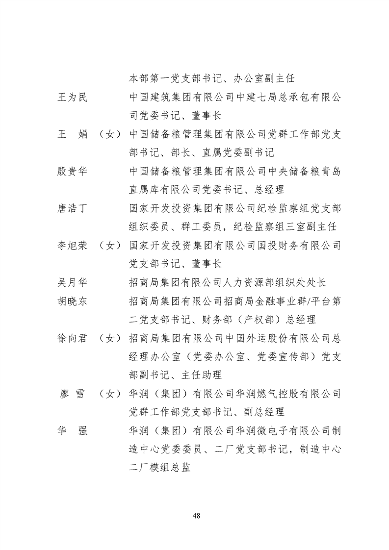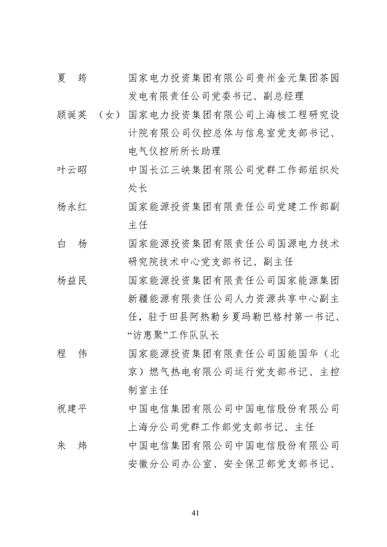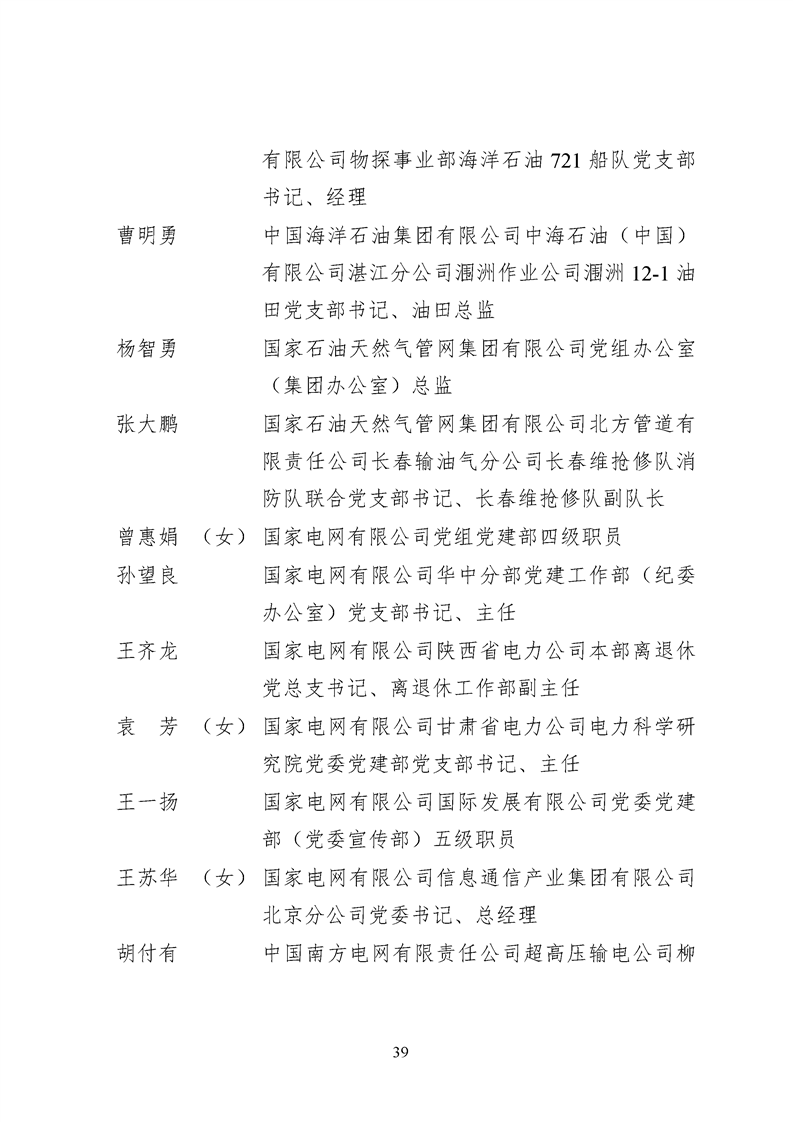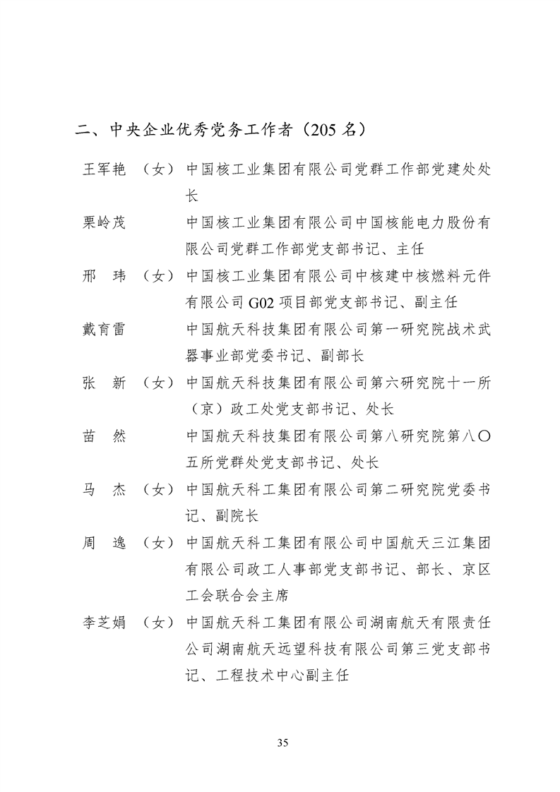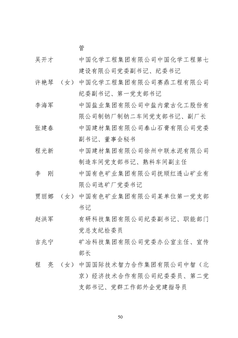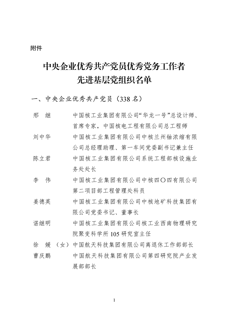 為表彰先進、弘揚正氣,激勵各級黨組織和廣大共產(chǎn)黨員在把握新發(fā)展階段、貫徹新發(fā)展理念、構建新發(fā)展格局中奮發(fā)有為、建功立業(yè),國資委黨委決定,授予邢繼等338名共產(chǎn)黨員“中央企業(yè)優(yōu)秀共產(chǎn)黨員”稱號(含追授2名),授予王軍艷等205名黨務工作者“中央企業(yè)優(yōu)秀黨務工作者”稱號,授予中國核工業(yè)集團有限公司福建福清核電有限公司黨委等448個基層黨組織“中央企業(yè)先進基層黨組織”稱號。這次表彰的優(yōu)秀個人和先進集體是中央企業(yè)各條戰(zhàn)線上的杰出代表,他們的先進事跡和崇高精神充分展示了新時代共產(chǎn)黨人的先進性和純潔性,生動詮釋了中央企業(yè)共產(chǎn)黨員的初心和使命,彰顯了國有企業(yè)先進精神的無窮偉力。