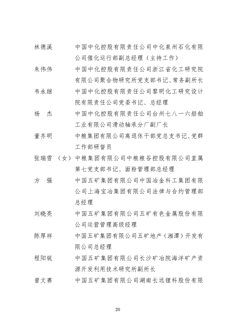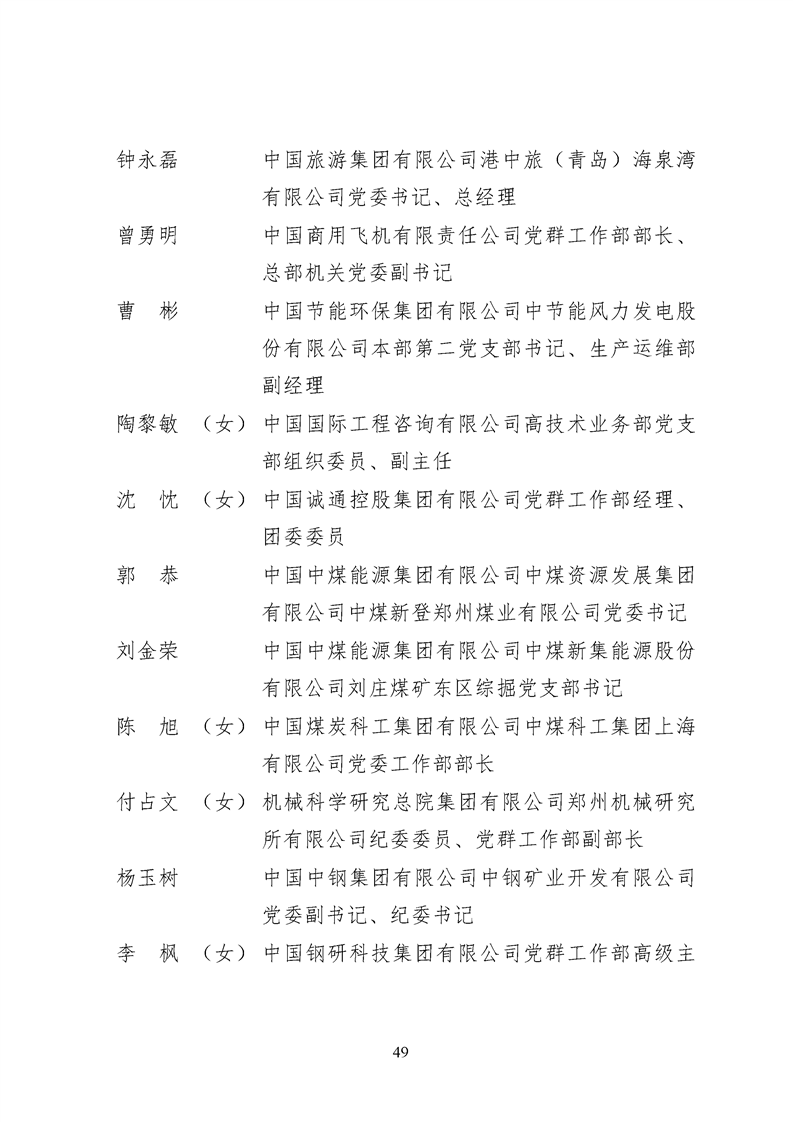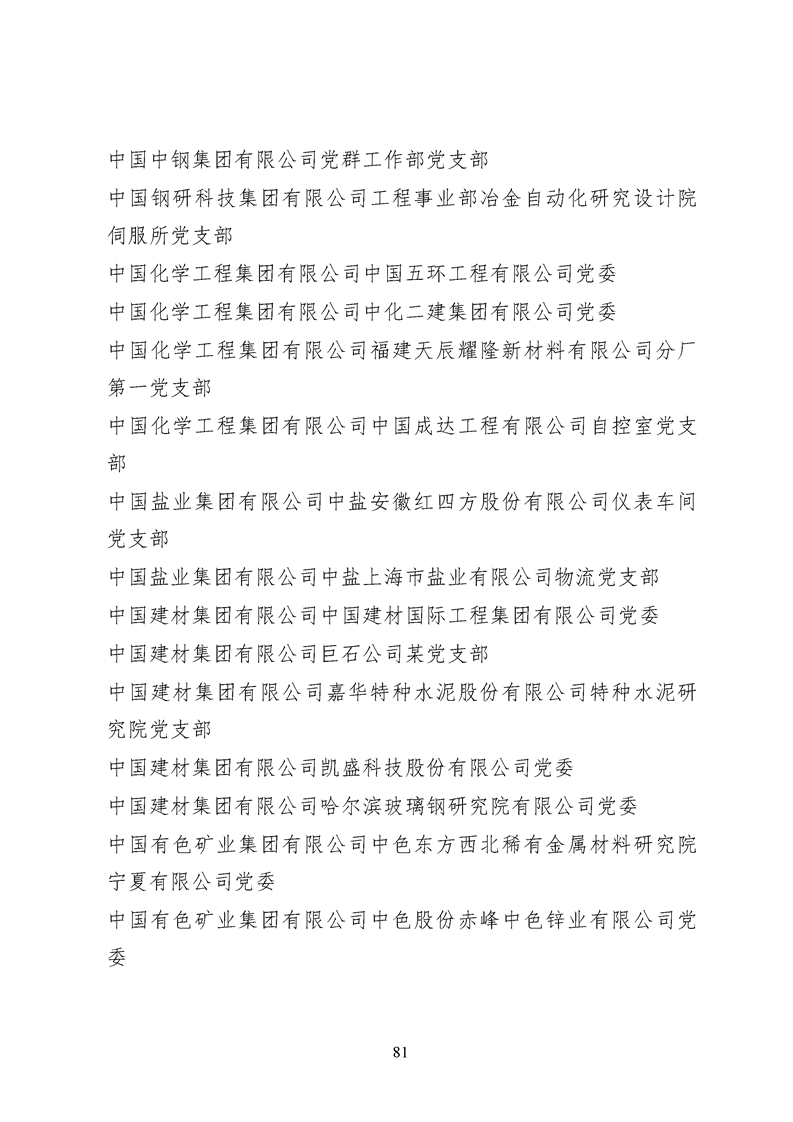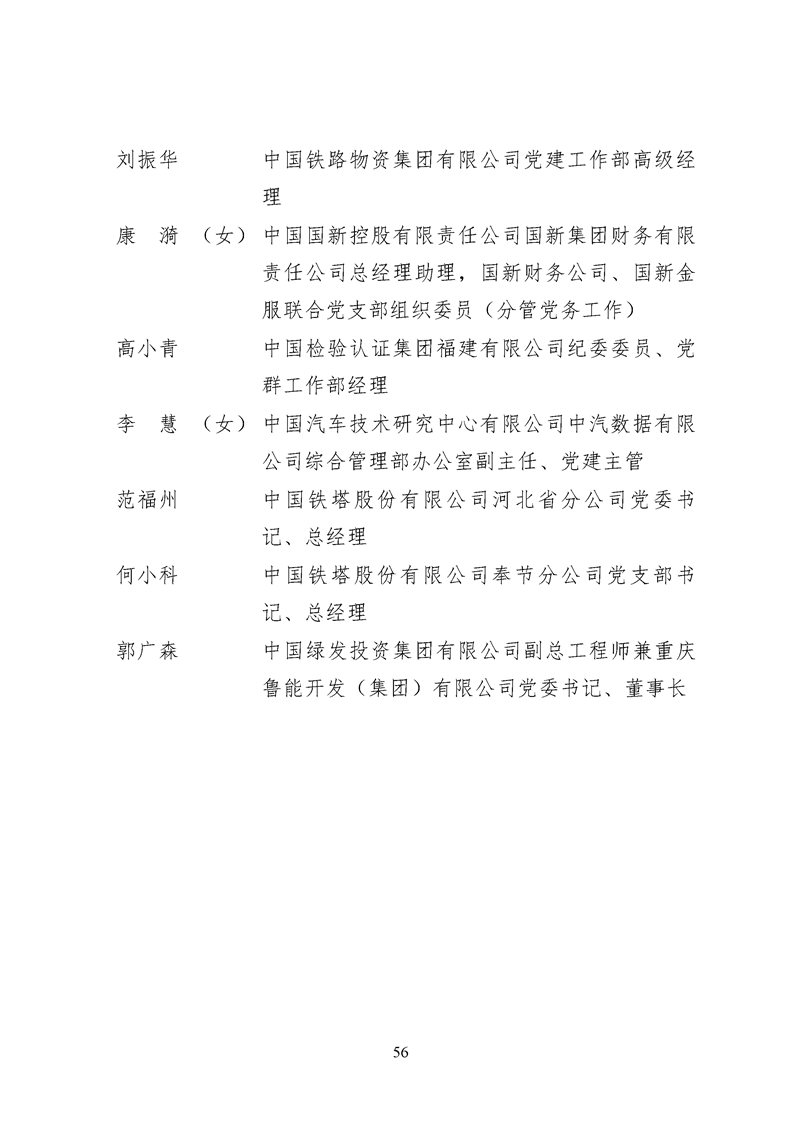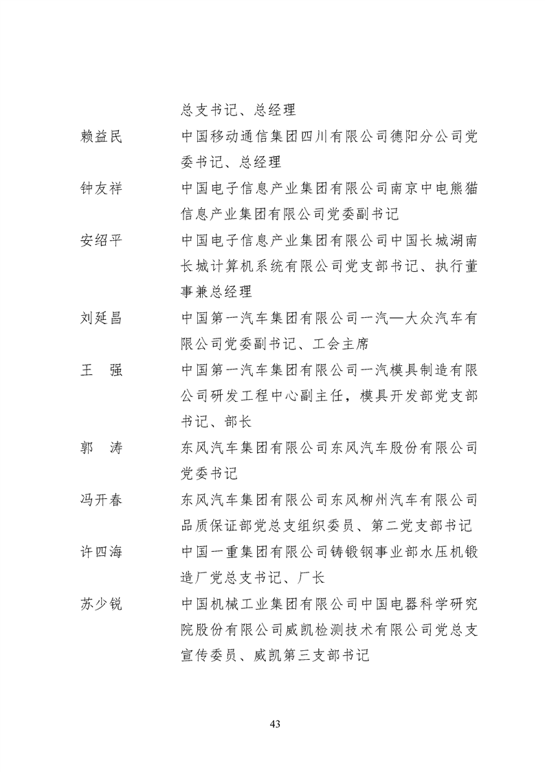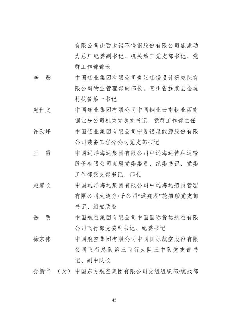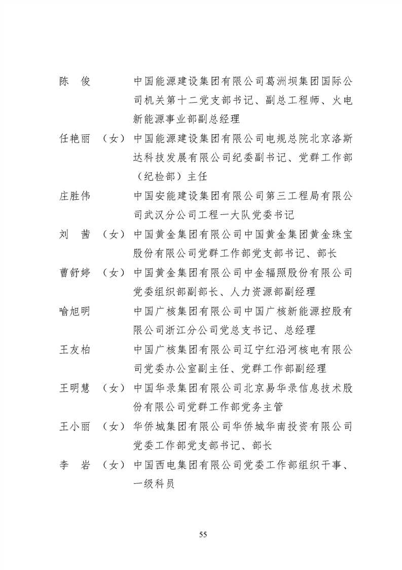 為表彰先進、弘揚正氣,激勵各級黨組織和廣大共產(chǎn)黨員在把握新發(fā)展階段、貫徹新發(fā)展理念、構建新發(fā)展格局中奮發(fā)有為、建功立業(yè),國資委黨委決定,授予邢繼等338名共產(chǎn)黨員“中央企業(yè)優(yōu)秀共產(chǎn)黨員”稱號(含追授2名),授予王軍艷等205名黨務工作者“中央企業(yè)優(yōu)秀黨務工作者”稱號,授予中國核工業(yè)集團有限公司福建福清核電有限公司黨委等448個基層黨組織“中央企業(yè)先進基層黨組織”稱號。這次表彰的優(yōu)秀個人和先進集體是中央企業(yè)各條戰(zhàn)線上的杰出代表,他們的先進事跡和崇高精神充分展示了新時代共產(chǎn)黨人的先進性和純潔性,生動詮釋了中央企業(yè)共產(chǎn)黨員的初心和使命,彰顯了國有企業(yè)先進精神的無窮偉力。